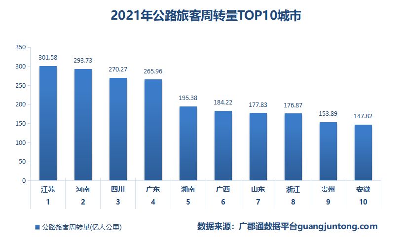 河南位列全国公路旅客周转量第二,达到293.73亿人公里。