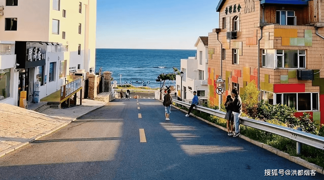 路的尽头是海,两侧是风格独特的房子。蓝天、绿树、街道、房子,相互映衬,像极了动漫中的场景,许多网友都称这里为“威海小镰仓”。