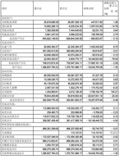 公司于2023年7月14日分别召开第八届董事会第二十三次会议和第八届监事会第二十四次会议,审议通过了关于更正《公司2023年第一季度报告》的议案,更正后的财务数据及财务报表能够客观、公允地反映公司财务状况及经营成果,不会对财务状况和经营成果产生重大影响。