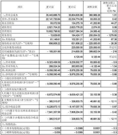 本次《公司2023年第一季度报告》更正,对公司财务报表的主要影响如下:公司净利润增加7.98万元,总资产减少1,804.57万元,负债减少1,814.94万元,净资产增加10.37万元。其中: