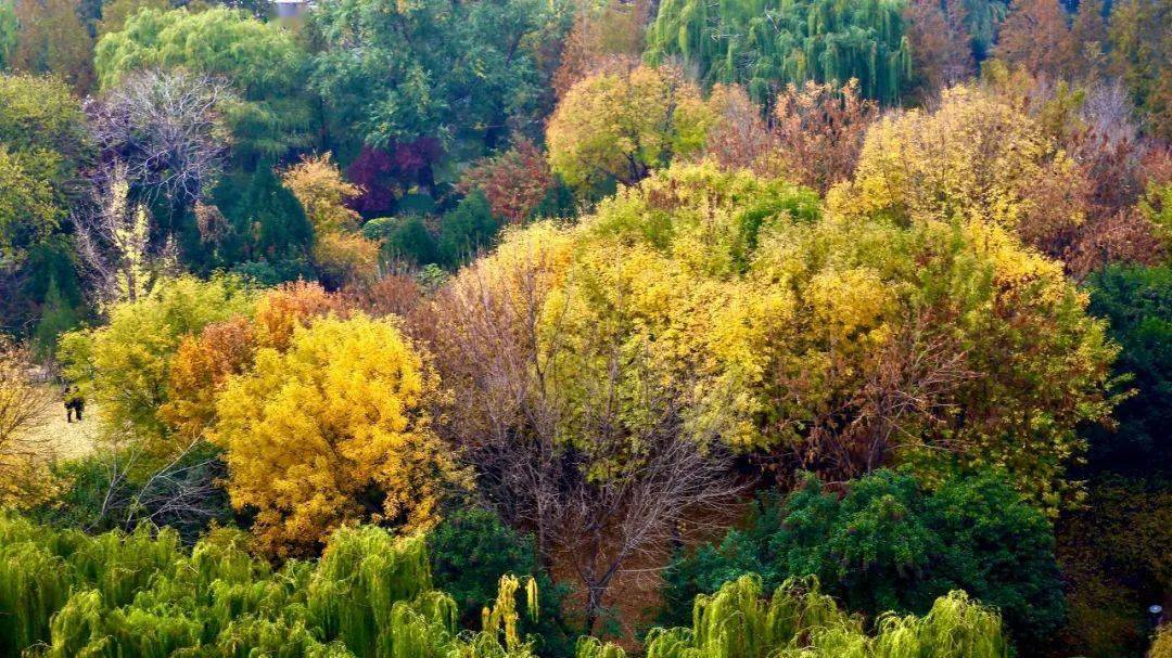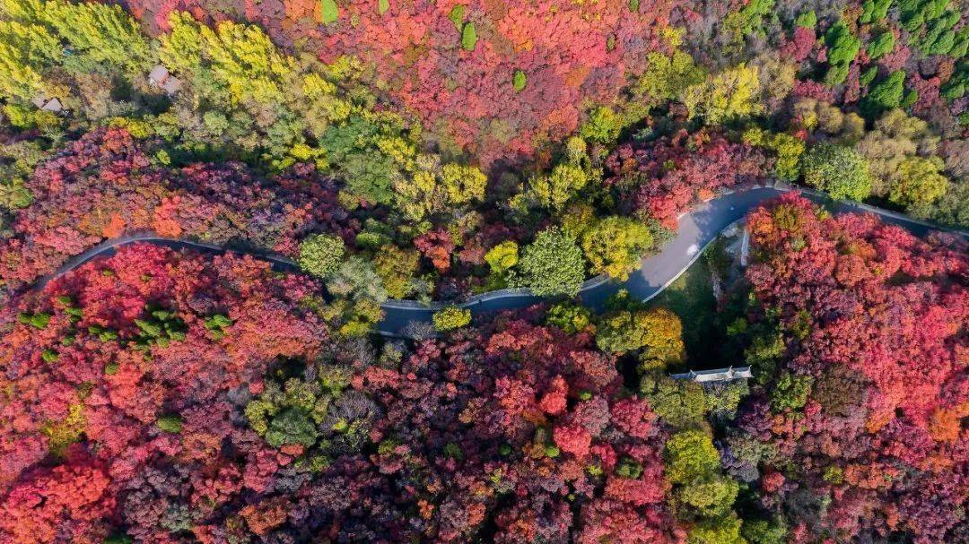 两旁的树木刚染上丝丝秋意,黄、绿、蓝在眼前绽放。