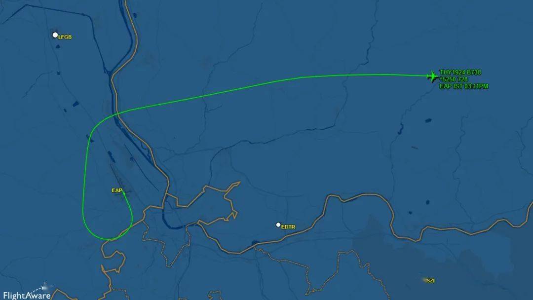 EAP机场若使用33号跑道降落,进近时低空穿越瑞士领土。从15号跑道起飞时,一分钟就进入瑞士,实在是“一起飞就出国”。