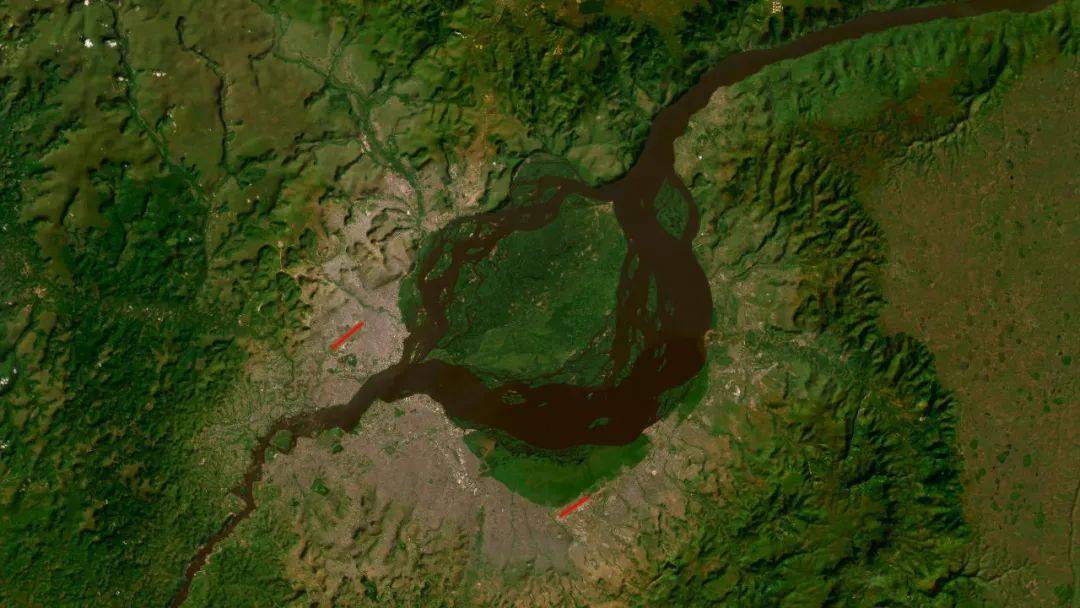 图:两个“刚果”机场距离边境(河流中线)示意