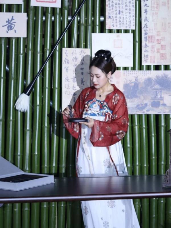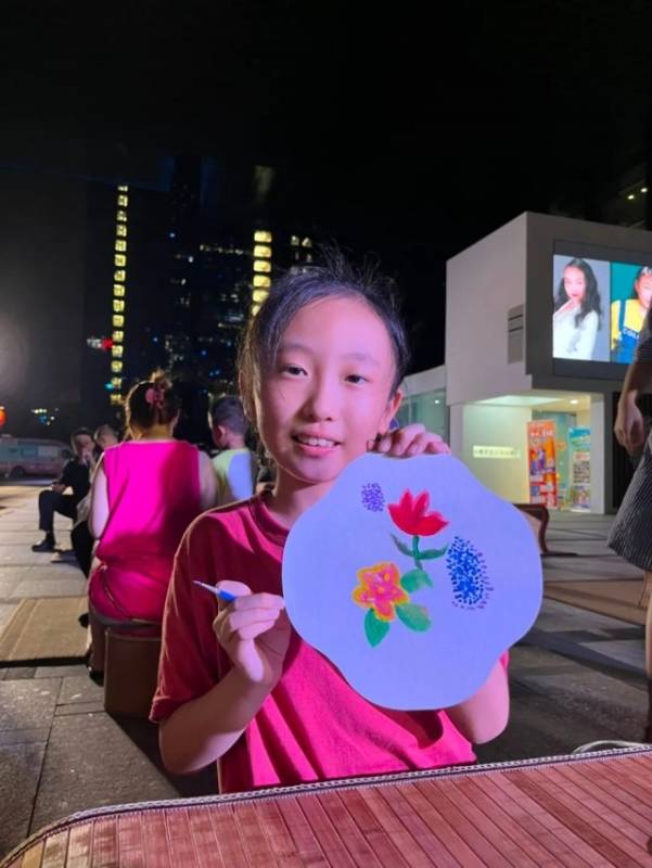 在文墨互动区,一组组亲子家庭正创作着属于他们的古风团扇。