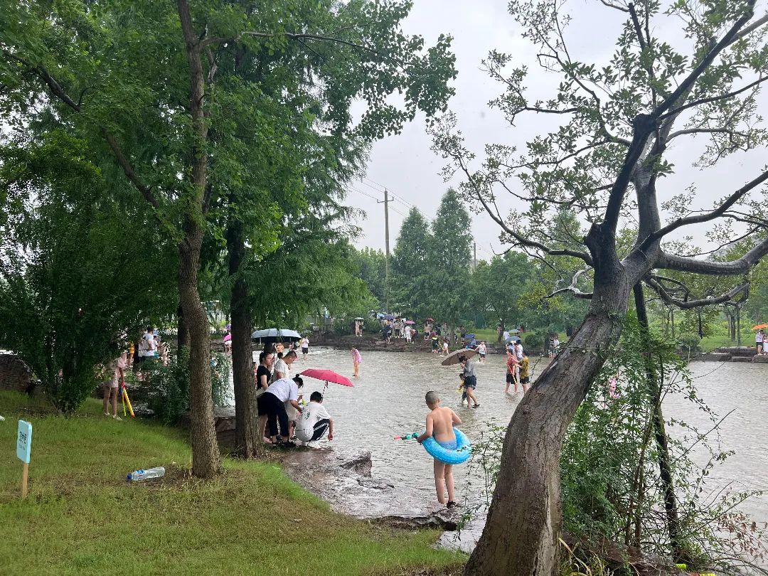 周末是这里放水的时候,小微在这里看到,不少家庭赶来玩水,这里变成了靖江人的水上乐园。
