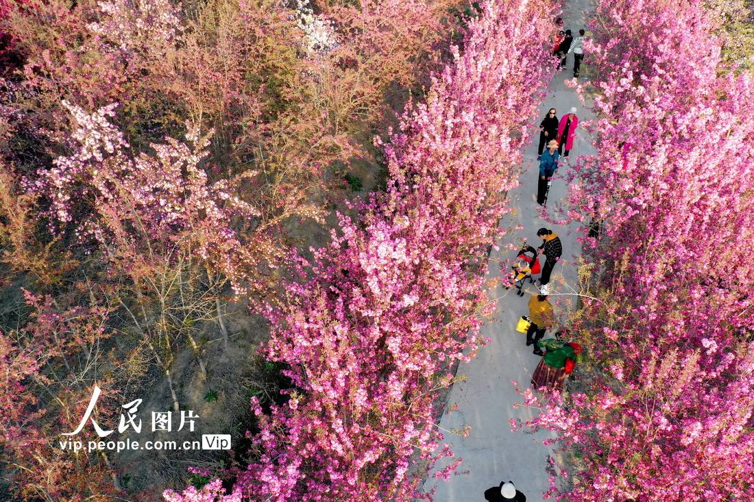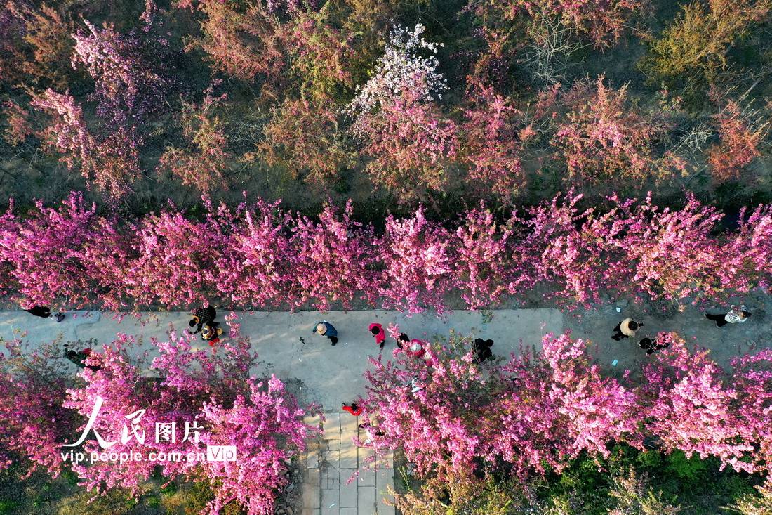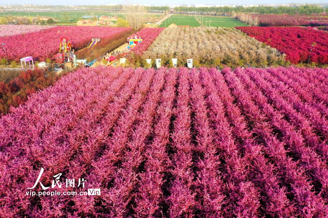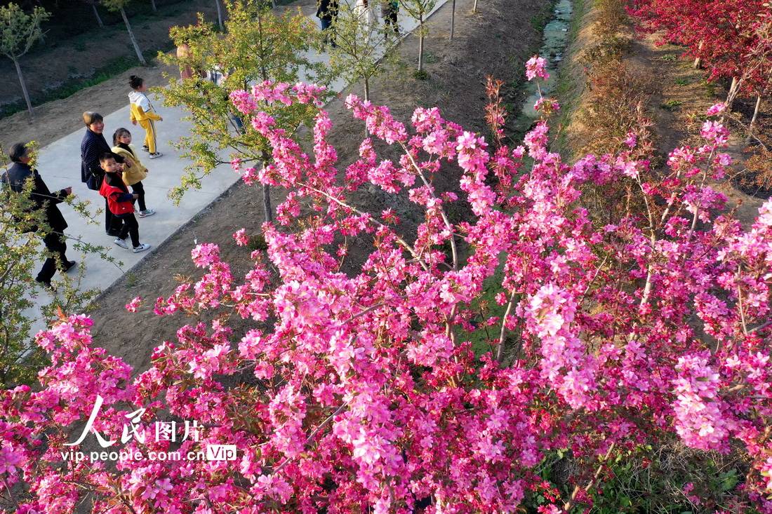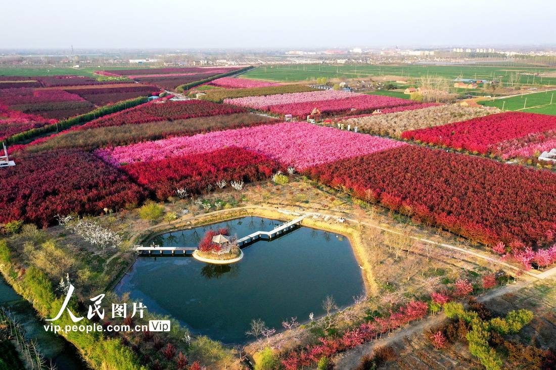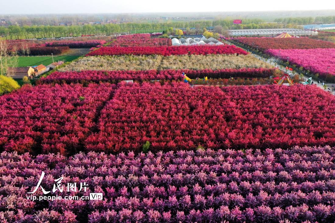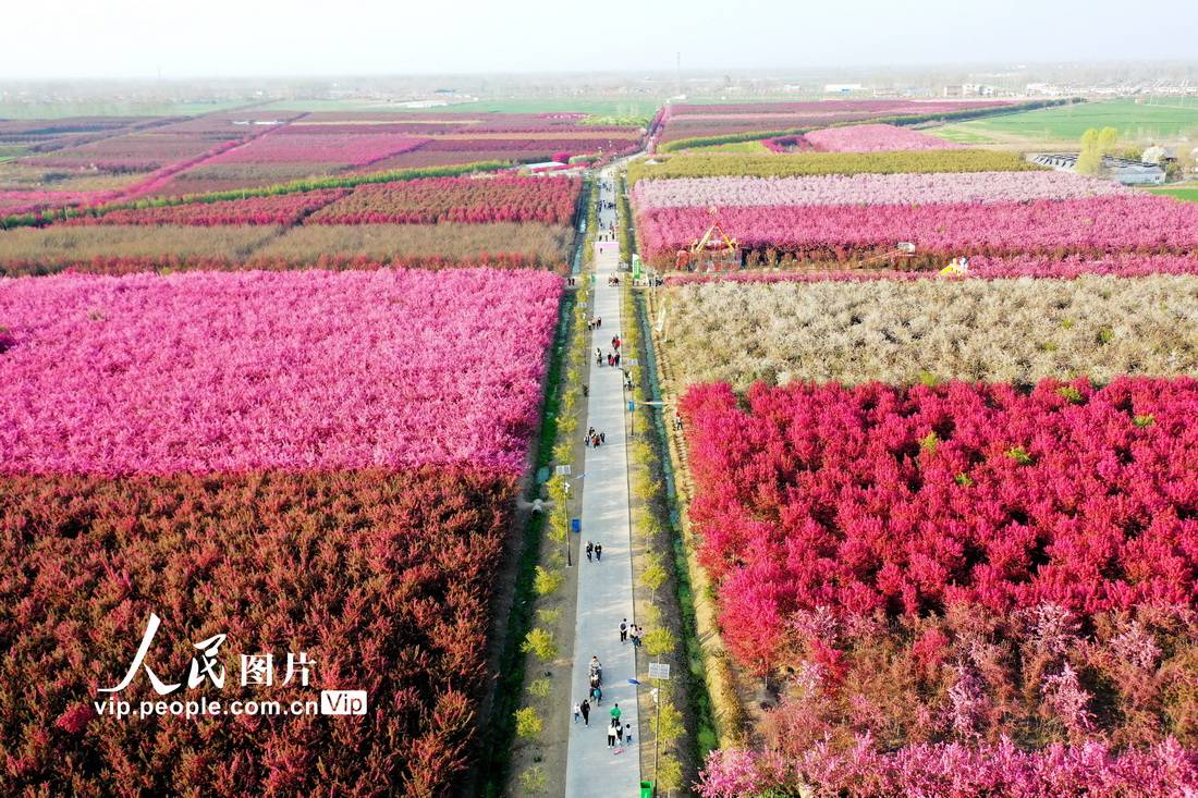 2023年4月1日,位于江苏省宿迁市沭阳县刘集镇境内的2000多亩海棠花迎春盛开,大地姹紫嫣红,吸引许多游客前来观花赏景。刘集镇是该县传统农业大镇,近年来,该镇因地制宜,通过土地流转发展花卉苗木种植,积极构建多元化、规模化和特色化的乡村文旅产业经济,促进了农民增收致富。汤以方摄(人民图片网)