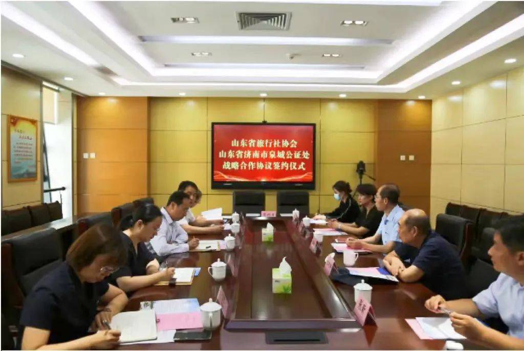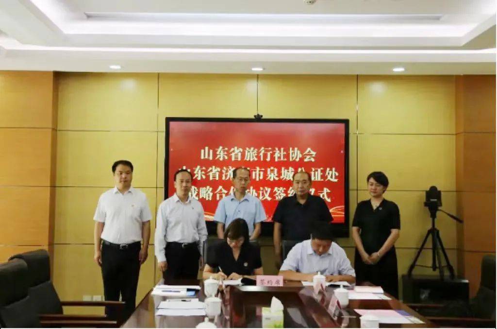 座谈会上,双方代表共同签署战略合作框架协议 。 根据协议,济南市泉城公证处将与山东省旅行社协会 在涉外旅游公证业务、涉企法律服务等方面开展深度合作,为出境游游客提供更便利的公证服务、为旅行社企业创造更好的法治化营商环境,最大限度便民利民、助企惠企,助推旅游产业繁荣复苏。