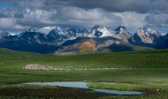 赛罕陶海确实“美丽”。每年6月到9月,这里草甸深密,花海连绵,每个月开的花都不一样;而四季交替,如画家的调色圣手,让平缓的谷地、和缓的坡地与高耸的山峦,都不断变换着色彩,在终年积雪的雪峰映衬下,或碧绿,或斑斓。一群群牛羊,在坡地上作着点缀,远远看去,宛如撒在草原上的粒粒珍珠。哪怕是夏季,几米十几米长的巨大冰块,在山谷阴凉处也随处可见;设若晴天丽日,太阳的温度穿过干净透明的空气,巨冰便融化成水,汇成无数溪流蜿蜒着,顺山谷欢快而下,汇成河湖,成为草原上最美丽的风景。开都河落差大、水流量大的地方,冬季也不结冰,沿线大小瀑布如线悬垂,注入汤汤河水,浩荡奔腾,一直流到博斯腾湖——中国最大的内陆淡水湖,引入孔雀河——库尔勒的母亲河。