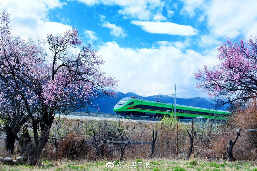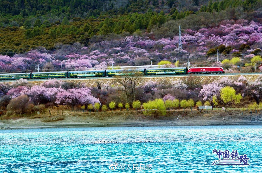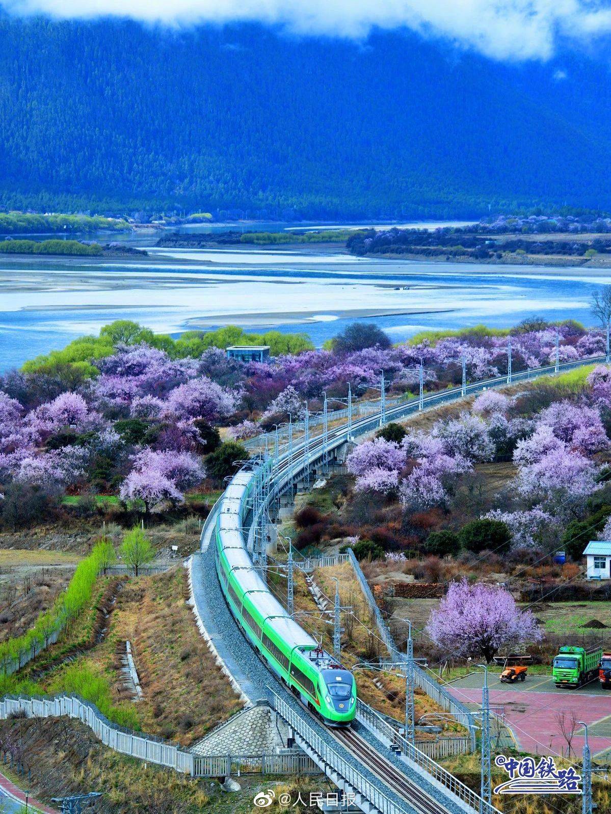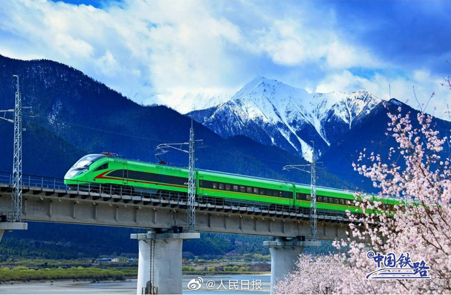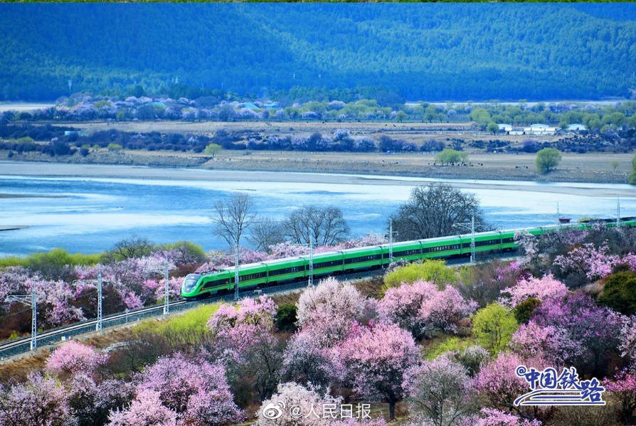 雪山、寺庙、桃花海,每年春天的林芝都以其绝美的风景吸引着全国的游客。随着2021年拉林铁路的开通,复兴号动车组穿行在桃花海间,成为拉林铁路春天最美的点缀。