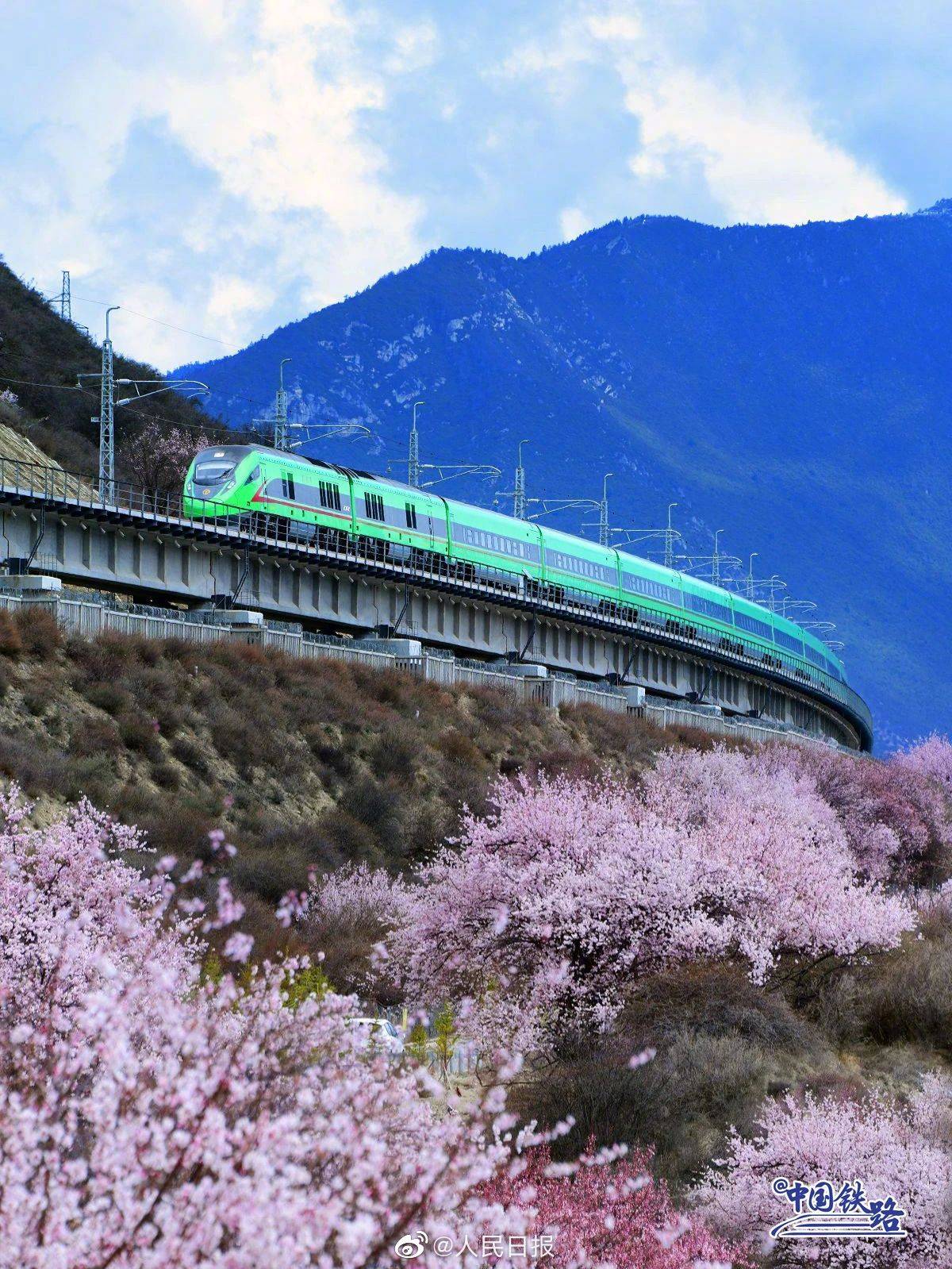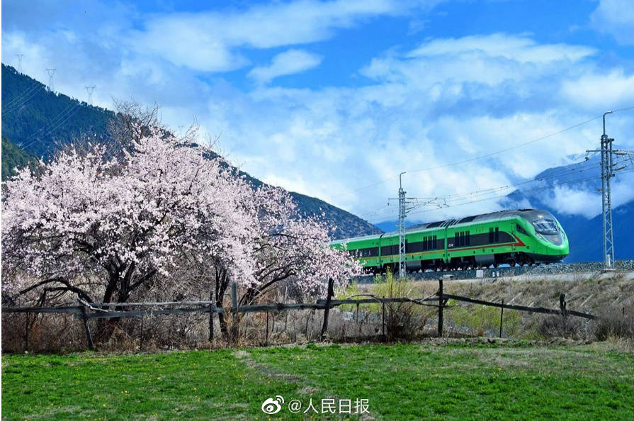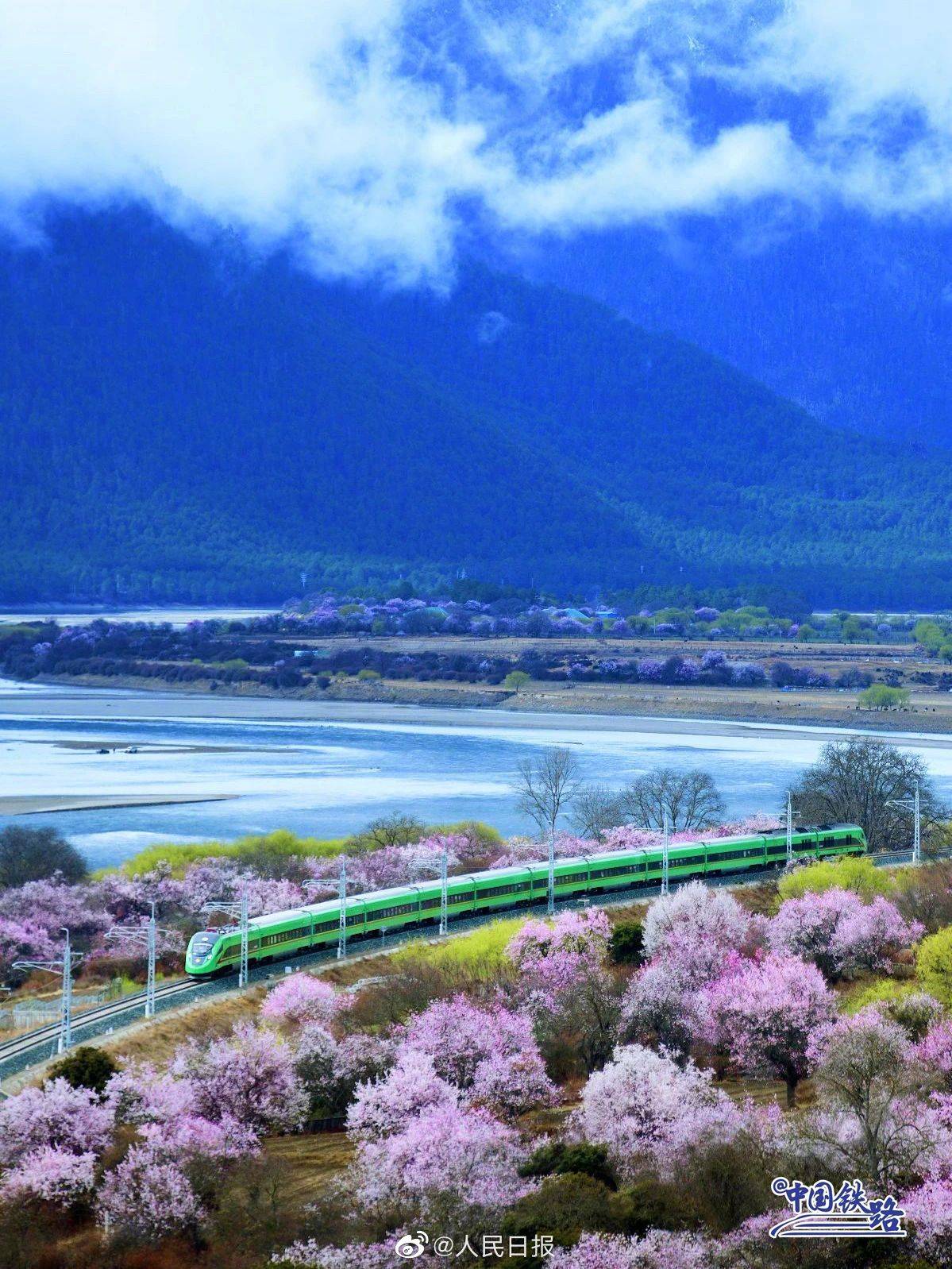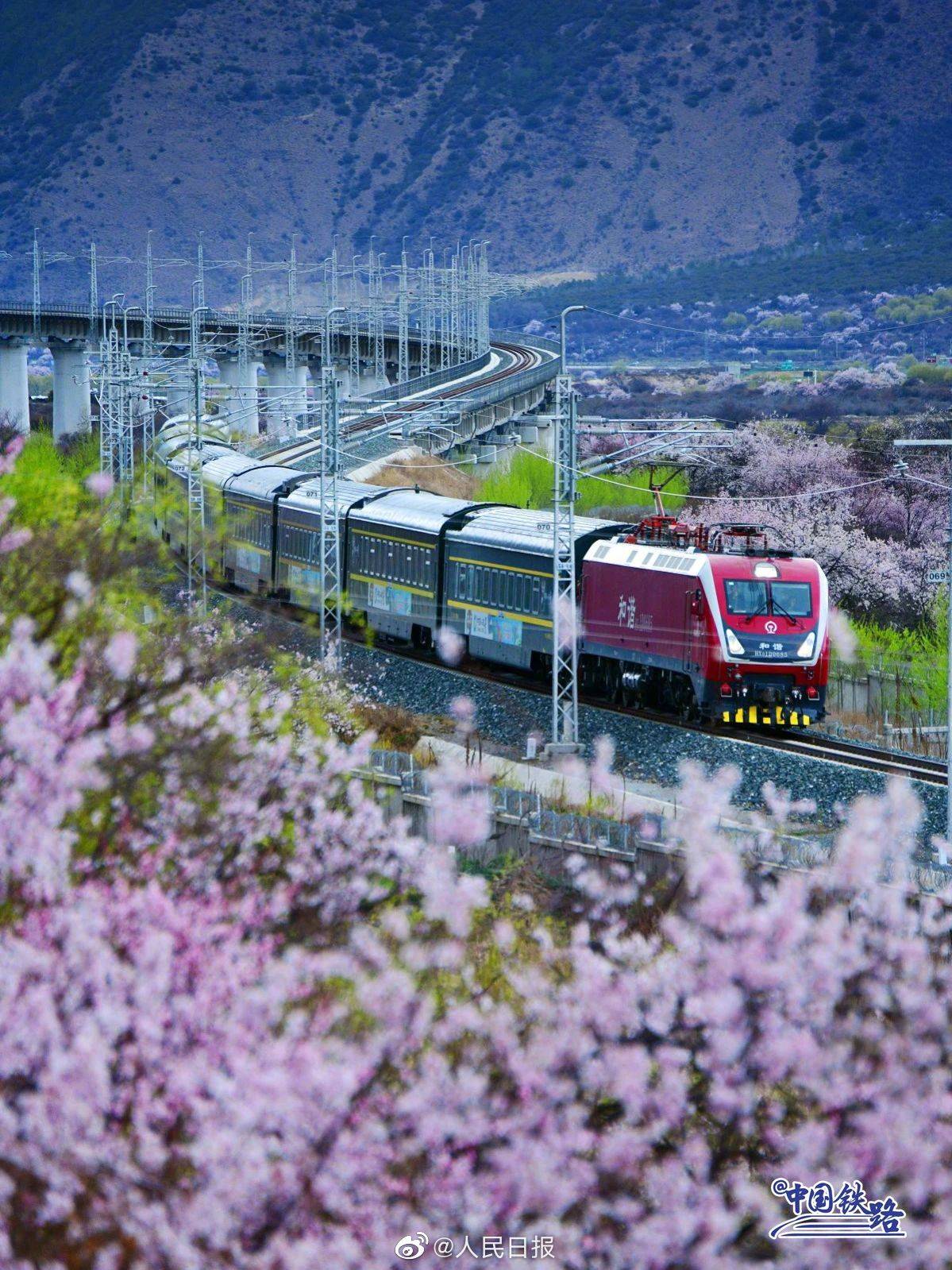 雪山、寺庙、桃花海,每年春天的林芝都以其绝美的风景吸引着全国的游客。随着2021年拉林铁路的开通,复兴号动车组穿行在桃花海间,成为拉林铁路春天最美的点缀。
