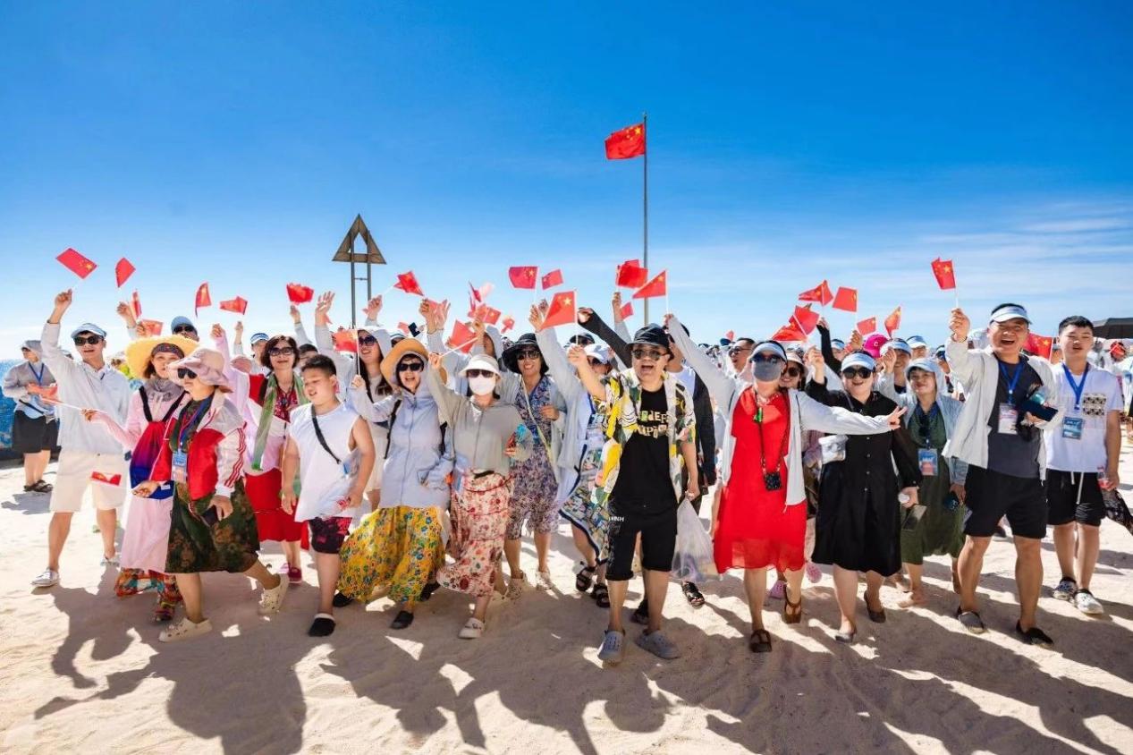 红花国色融汇家国情怀,碧海蓝天唱响爱国豪情。当五星红旗在祖国最南端冉冉升起,400余位郎酒Fans来到了红花郎海上嘉年华之旅的首站银屿岛。在这颗坐落于西沙群岛的璀璨明珠之上,红花郎以中国酒致敬中国情,为此次海上之旅增添了最为浓墨重彩的一笔。