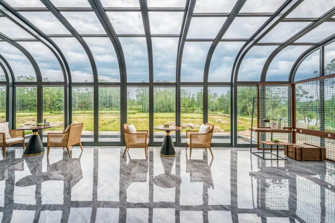 每一栋房都以24节气命名,全实木的屋子夹杂着樟木的清香,全景无遮挡的大窗户,可望见远处的山河。漫步在山间,田野间每一间事,都是无比的浪漫。