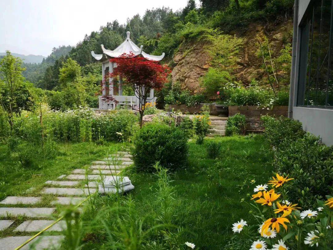 远处的最高峰黄龙山云蒸雾蕴,山居内清风竹韵林泉飞瀑,一切的欲念和嘈杂到此打住,烟消云散。