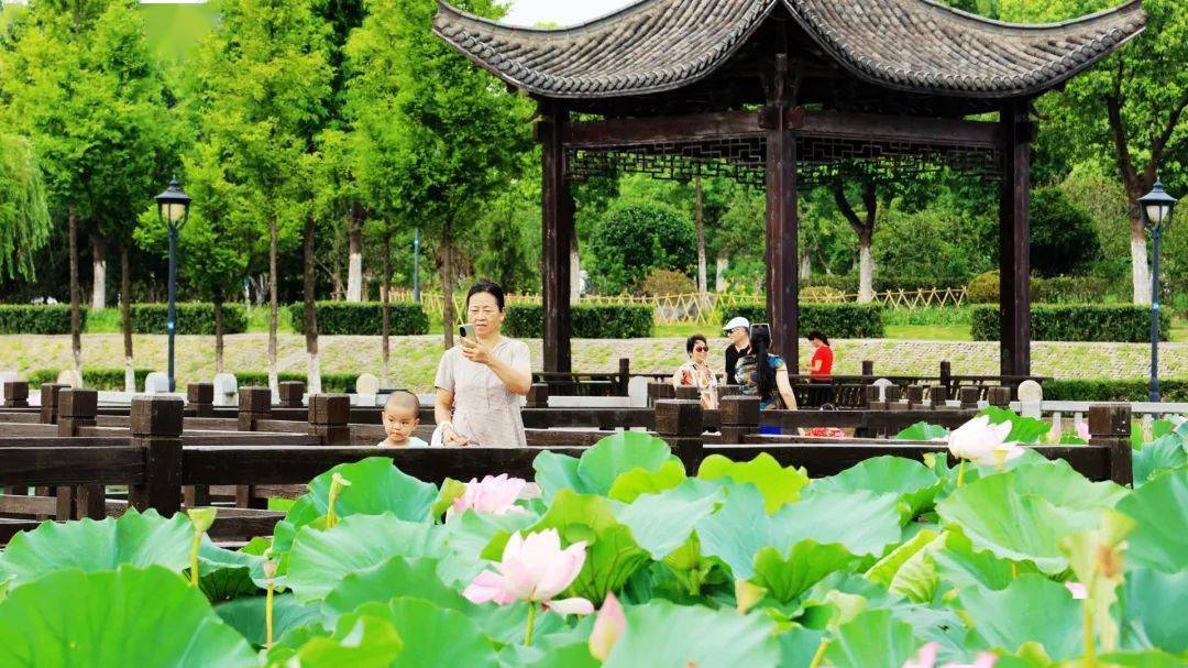 市民在陶冲湖公园赏荷(图源:安徽图片网 张敏 摄)