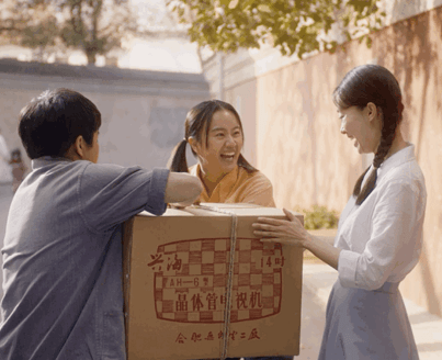电影画面上,电视机的外包装纸箱上,有“14吋”“AH-6型”“晶体管电視机”等字样,正下方还印着“合肥無线電二廠”字样,让观影的合肥观众增添了一些亲切。