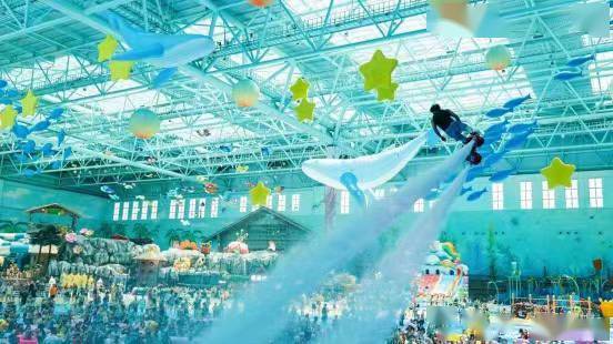 伴随着音乐冲浪和热情的六国风情舞蹈,今年的水世界更加热闹,水上电音派对的“万能world电音节”开启,还有巨型小黄鸭、彩虹天梯、东南亚落日沙滩、躺平大拖鞋等多个打卡点,沉浸式体验泰式水上室内恒温乐园,值得一提的是,将超长经营到晚上10点,延迟快乐时光。