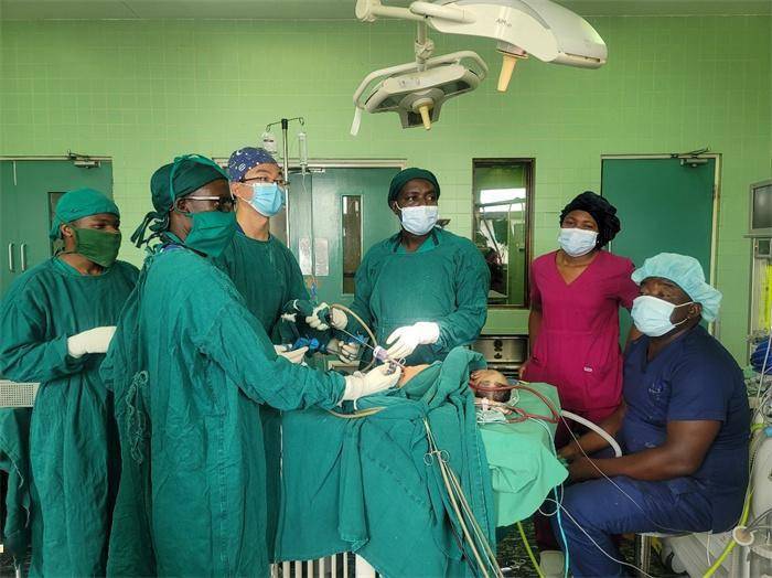 为了在有限的援助时间内最大程度地帮助受援医院提升医疗服务水平,帮带当地医务人员是最快最有效的途径。四名医疗专家尽可能多地承担起了医院的手术任务,周末的手术室也都被他们“承包”,因为他们要把每一次诊断、每一场手术都当作业务公开课来做,为当地医务人员做好示范。让医疗队感到欣慰的是,十个月来,姆贝亚分队门诊诊疗4000余人次,手术700余台,麻醉1800余人次,查房5000余人次,在他们与当地医务人员的共同努力下,受援医院已经可以独立开展腹腔镜疝气修补术、腹腔镜隐睾睾丸下降固定术、腹腔镜肛门闭锁根治术、腹腔镜巨结肠根治术、腹腔镜胆囊切除术等微创手术,填补了当地甚至是坦桑尼亚的技术空白,医疗技术得到了显著提升。