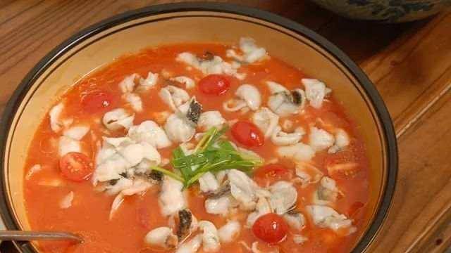 香樟树农家客栈——番茄鱼:这道菜和很多餐厅中的酸菜鱼不太一样,用番茄和鱼片炖制,两样食材相融合以后,鱼肉软嫩,酸甜可口,鱼汤鲜香又开胃。