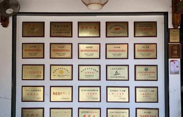 在紫笋农庄做厨师也相当累,餐厅做菜好吃20年来一直名声在外。除了住宿的客人在农庄用餐,不住宿的游客也会来这里打卡拔草,走进农庄就能看到各种奖牌挂满了一面墙。