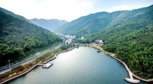 水口乡顾渚景区的霸王湖(谭云俸摄)这里还有始建于三国赤乌年间,距今1700多年历史的寿圣古寺。寺内一雄一雌千年古银杏树,生机勃勃。雌株一树成林已是“五代同堂”,历经千年,仍然年年硕果累累;