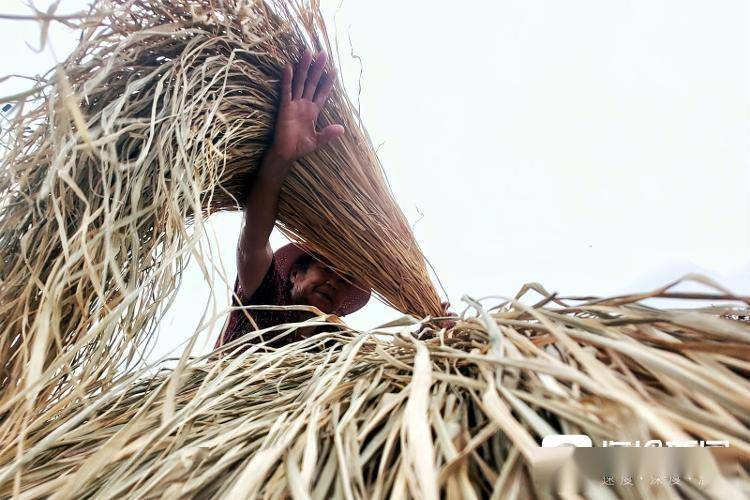 《酷暑晒草忙》2023年7月15日,山东省郯城县马头镇玉带村农民正在文化健身广场上晾晒黄草。入暑以来,当地黄草进入收获季节,农民抓住有利时机忙着进行抢收抢晒。黄草也叫“琅琊草”,是非遗手工编织的主要材料。郯城县做活新媒体“线上+线下”销售文章,为农民夯实这一致富产业项目。高军 摄