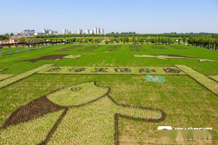 《五彩稻田画》2023年7月16日,在山东省济宁市鱼台县王鲁镇陈堂村占地120亩的有机稻米基地里,一幅幅巨型稻田画已进入观赏期。今年插秧时节,村民以大地为“画布”,用彩色水稻作“颜料”,精心绘制出巨幅壮美的稻田画。该镇的稻田画将现代创意农业与休闲旅游相结合,在发展绿色有机稻米品牌的同时,不仅为市民休闲观光提供了好去处,吸引周边县市区游客前来观光旅游,推动乡村振兴。李立 摄