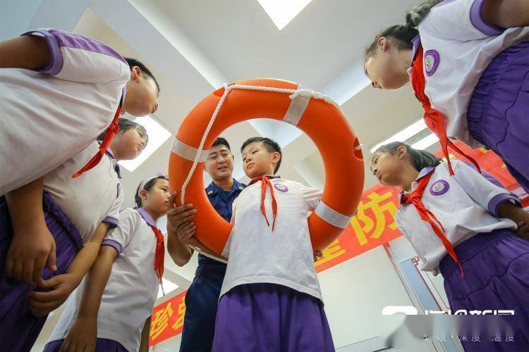 《学习防溺水 安全过暑假》2023年7月13日,山东省青岛市李沧消防救援大队李村消防救援站走进浮山路街道东李社区,消防员通过宣讲防溺水常识、教授安全急救技能,家长和孩子参与模拟救援、穿救生衣、打绳结等寓教于乐体验中,增强家长和孩子们的安全意识和自救能力,筑牢暑假安全防线。张鹰 摄