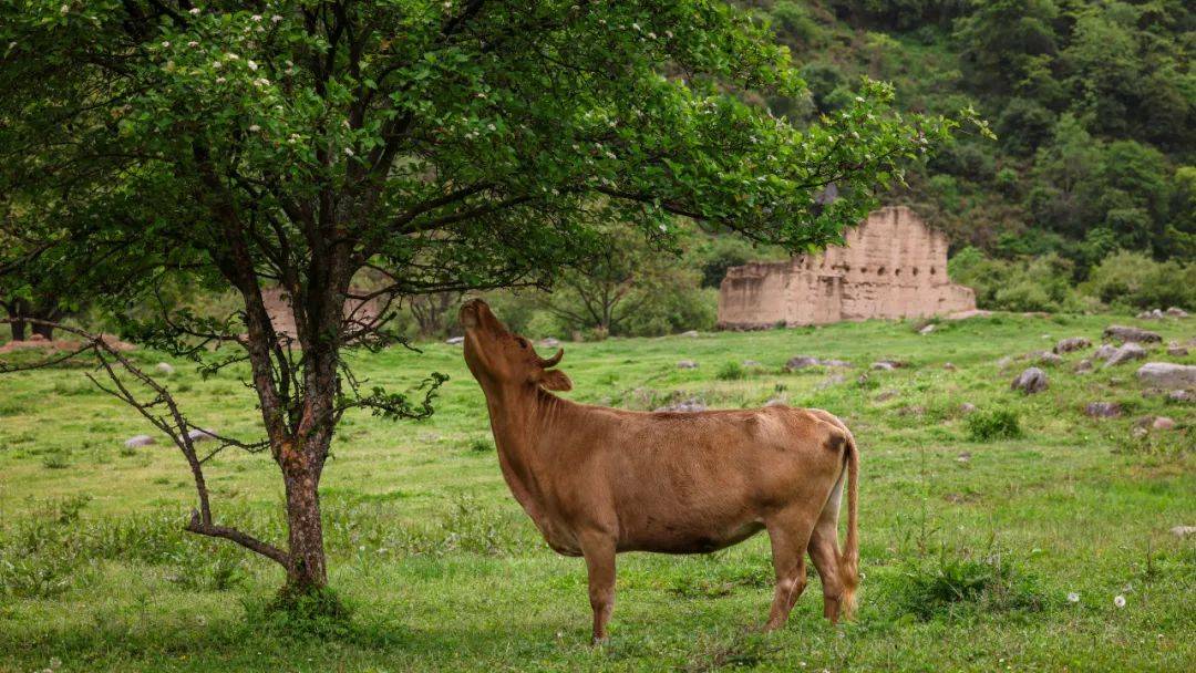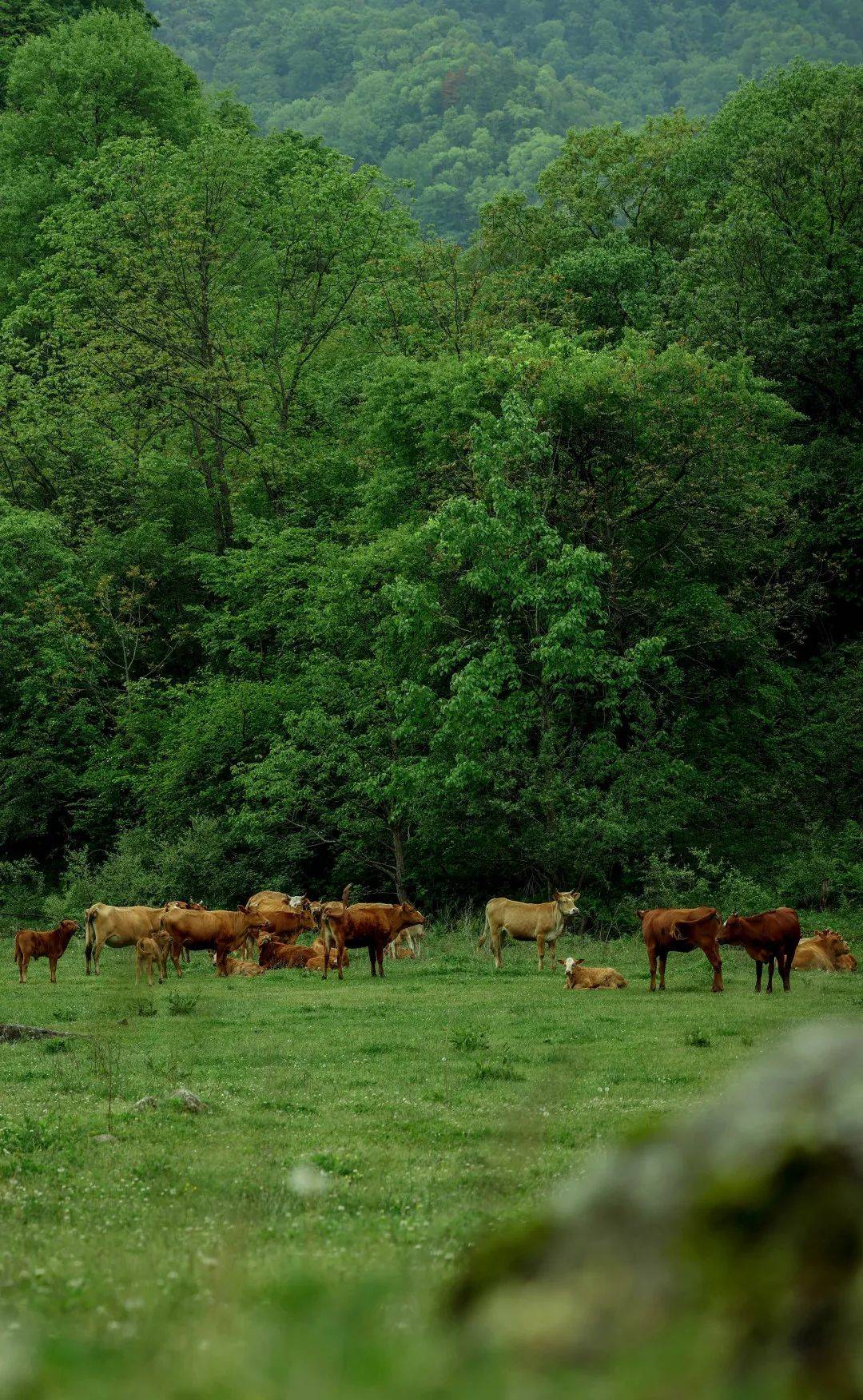 来这里的游客,和牧民散养的牛羊一起玩耍,摸摸它们可爱的小脑袋,累了就躺在小溪边的石凳上,在树荫里享受清风。
