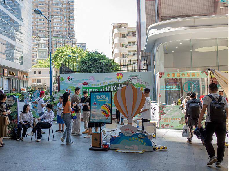 本次暑期宣传推广活动以“摘果、玩水、避暑、热气球”为主题,全面展示了从化区良好的生态资源、特色旅游项目和农特优产品。活动现场设置了主题活动区、佳果展示品尝区、非遗表演区、人形立牌打卡区、天幕资料发放区、视频播放展示区,推出了暑期亲子游、研学游、避暑游等多个主题游项目,市民游客在不同区域打卡体验,解锁暑假从化新玩法。