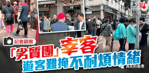 看到通关了,廉价团的餐厅于是又招揽生意了,推出40元港币的餐标,一下子,那些廉价团们纷纷而来,结果堵得别人的小区无路可走。