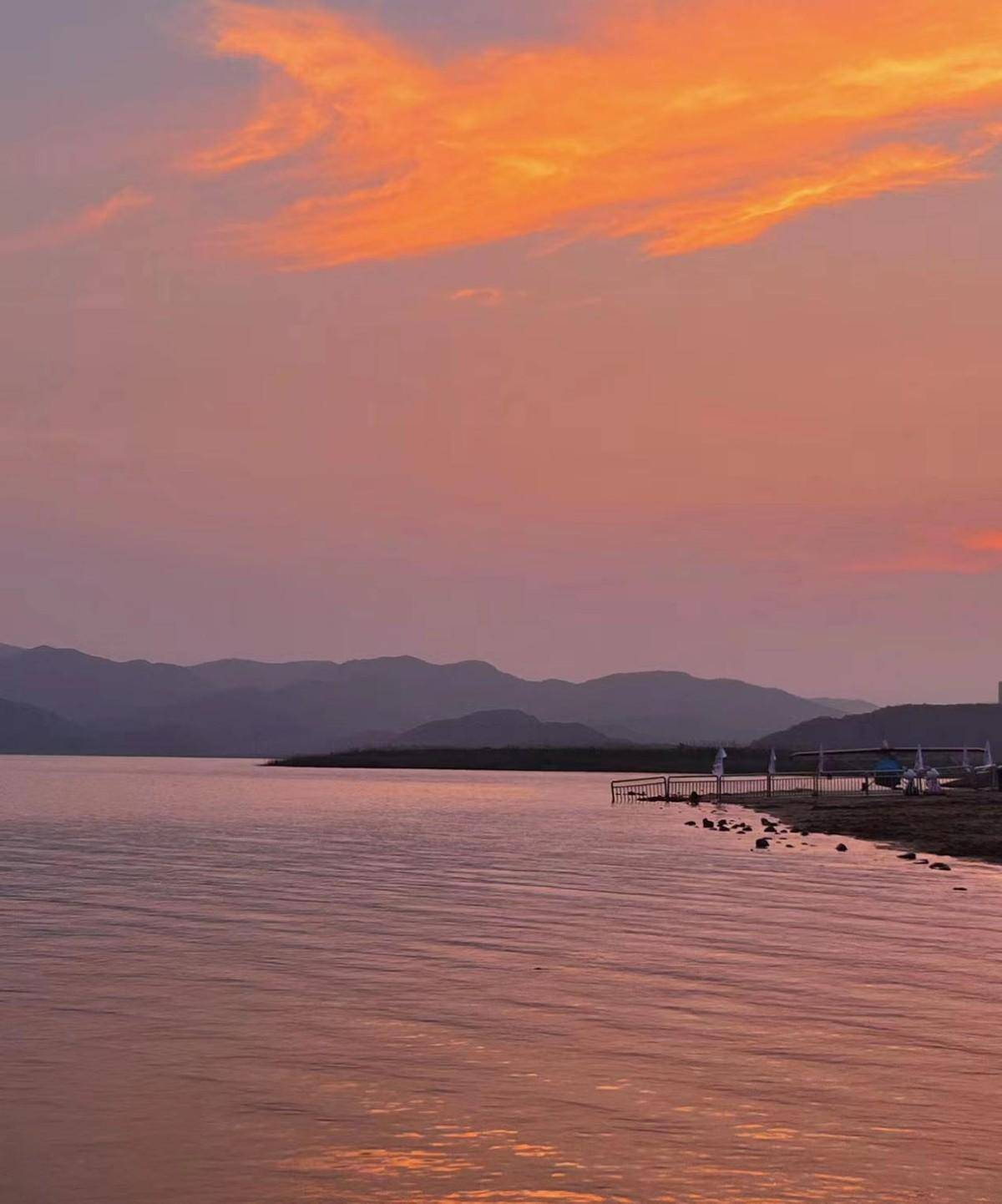 傍晚邂逅了心心念念的“橘子海”。落日余晖,霞光漫天,渔舟唱晚,随便一拍,都是画里的风景。