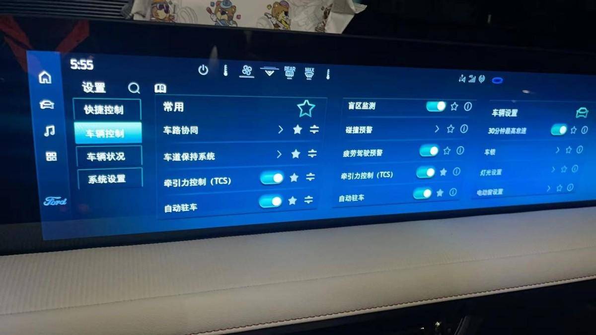 这块高清宽屏也很有意思。首先视觉上就比较shock,从主驾延伸到了副驾,仅中控部分就有27英寸,屏幕还是可以进行分屏操作的,一块屏当作两块屏来使,就说这次自驾游,我用靠近主驾的屏导航看地图,朋友就用右边的屏看了会儿电影,坐在副驾完全不会无聊。当然,因为两边屏有独立音源,也不用担心他看电影的声音干扰我开车,这点还挺人性化的。长途自驾游,有个这功能真的就是很奈斯滴。