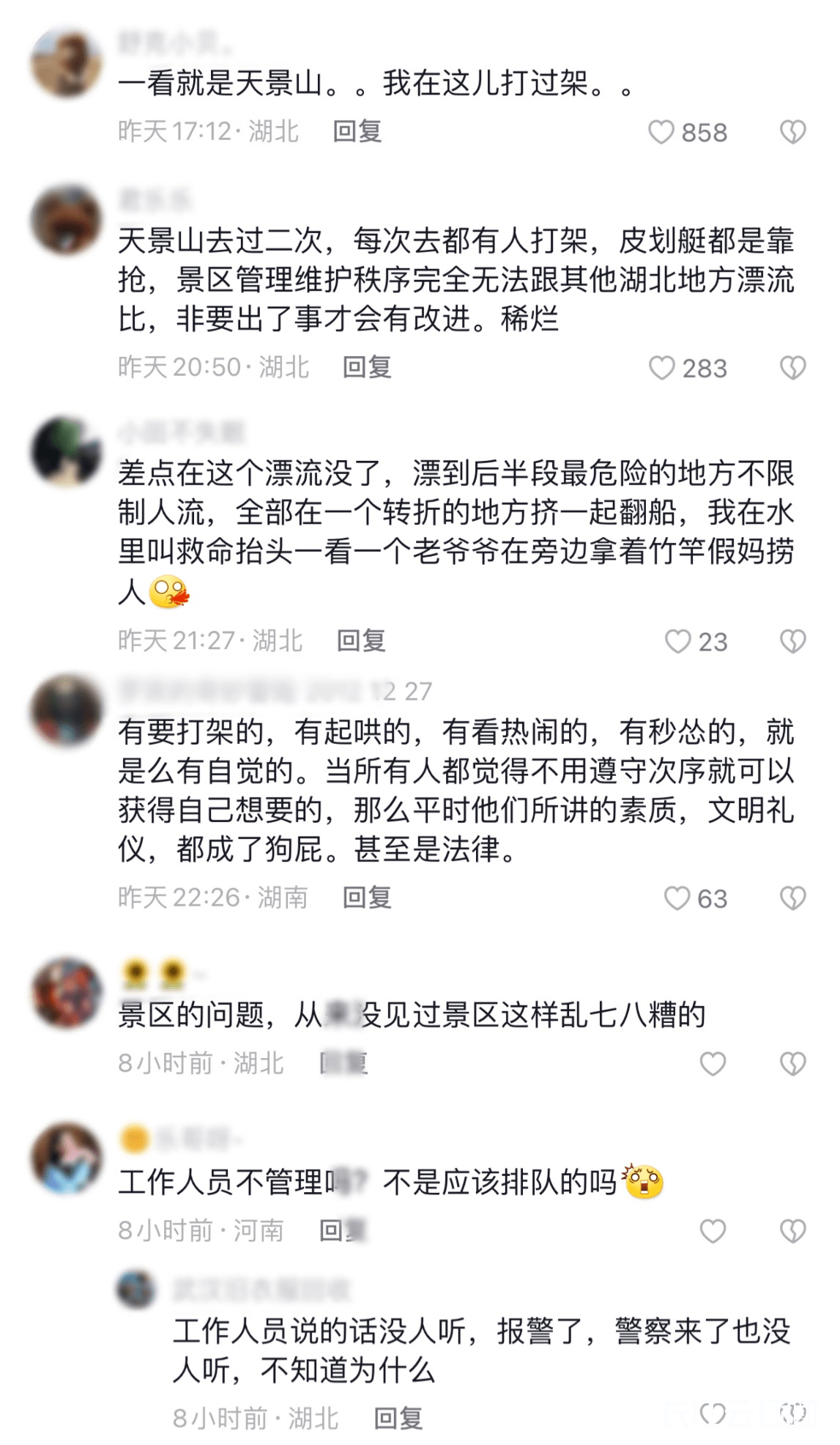 说起麻城天景山漂流,不少人的第一印象除了惊险刺激,就是管理混乱。关于景区管理的负面问题,这已经不是第一次被网友曝光。