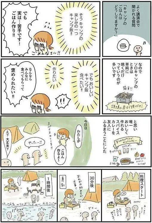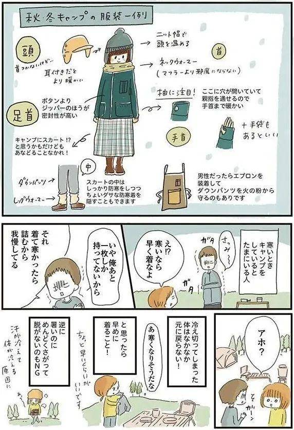 有关露营装备的选择和相关知识点,Yuka都事无巨细地将每个环节以漫画的方式呈现,这也是她多年来在营地获得的珍贵心得体验。如果大家感兴趣的话,下次我们会将它翻译成中文供各位参考~