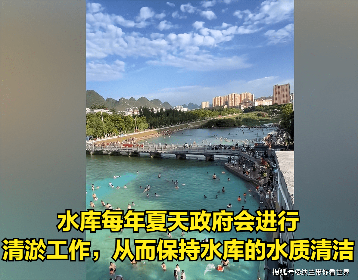 据市民黄女士介绍,水库每年夏天政府会进行清淤工作,从而保持水库的水质清洁。这一措施确保了水库水质的良好,并有效减少了水中有害物质对市民健康的影响。市民们可以放心地在水库中玩耍,享受清澈透明的泳池水。
