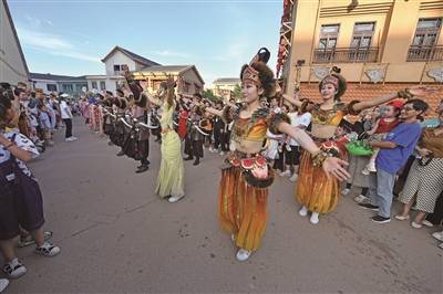 在演艺的结尾,需要一个大事件将气氛烘到高潮,这便是“灵州会盟”。“漫蒲小镇在宁夏贺兰山,很多文化元素都是围绕本地展开的。而灵州会盟是发生在宁夏古灵州的大事件,李世民就是从这开始被称作‘天可汗’,所以我们安排这场戏压轴。”王国强不打算展现战争场面,而是安排一场庆功宴。宏大的剧情随着这场庆功宴走向高潮,也迎来了结尾。考虑到游客体验效果,结尾处直接播放电音歌曲,所有人瞬间出戏,剧情中的宴席变成了现实的狂欢。