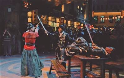 “还有几场戏,也是根据史料改编的,但这毕竟是文旅项目,我们不是来教历史的,要让观众娱乐起来。”王国强介绍,《明实录》中记载着一位名叫史昭的将军,以征西将军的名义镇守在宁夏,这位将军为人耿直,经常上奏弹劾东厂,引来对方不满。在《侠客行》剧情中,便设计了刘公公这一角色,他就是东厂派来追杀史昭的,在酒肆与侠义豪情的吕四娘展开一场精彩的争斗。