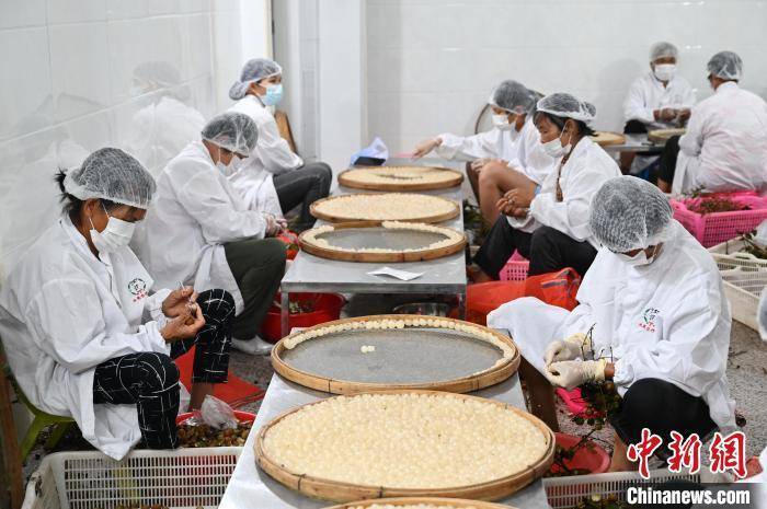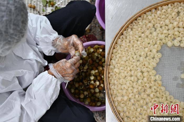 高州市分界镇江记水果专业合作社的工作人员将龙眼剥壳去核。 陈楚红 摄