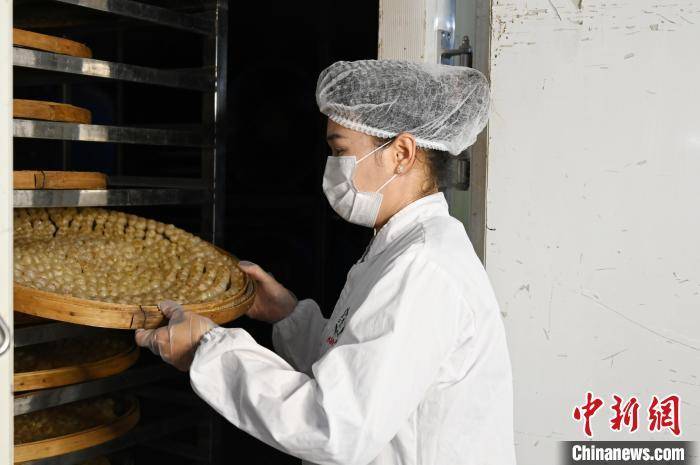 高州市分界镇江记水果专业合作社的工作人员在检查桂圆肉(干)烘干程度。 陈楚红 摄