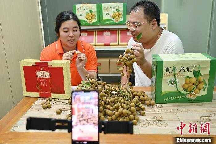 广东茂名高州一电商直播平台的工作人员在介绍高州龙眼。 陈楚红 摄
