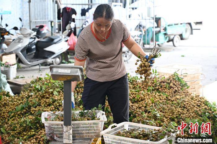 高州市分界镇江记水果专业合作社的工作人员将新鲜龙眼称重打包。 陈楚红 摄