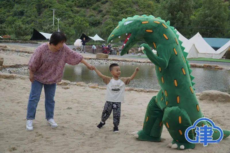 7月15日傍晚,暑气渐消,在蓟州区下营镇刘庄子村北,新打造的立木伴山营地正式启用,与“哔哩哔哩”合作的《霸王龙雷奇》动画全国首展同步启动,吸引了上百名亲子游客休闲体验。