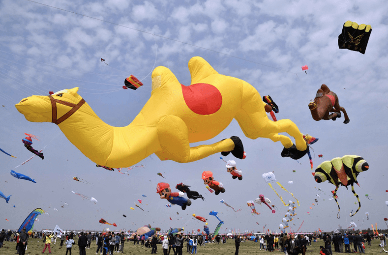 每逢春天,在山东潍坊都会举办的大型风筝节,都会吸引无数人的目光。潍坊是风筝的发祥地,早在20世纪30年代,潍坊就曾举办过风筝会。1984年4月1日(农历三月三),首届潍坊国际风筝节正式开幕,会期十天。来自11个国家和地区的18个团队,共185人,与潍坊工美风筝表演队,进行了放飞表演。在当时,放飞的风筝有70余种,引起了广泛关注,得到了各国观众的赞誉。第一届潍坊国际风筝会的成功,让潍坊人看到了风筝的广阔前景。从此,每年4月都会举行一届国际风筝会,规模越来越大,内容越来越丰富。