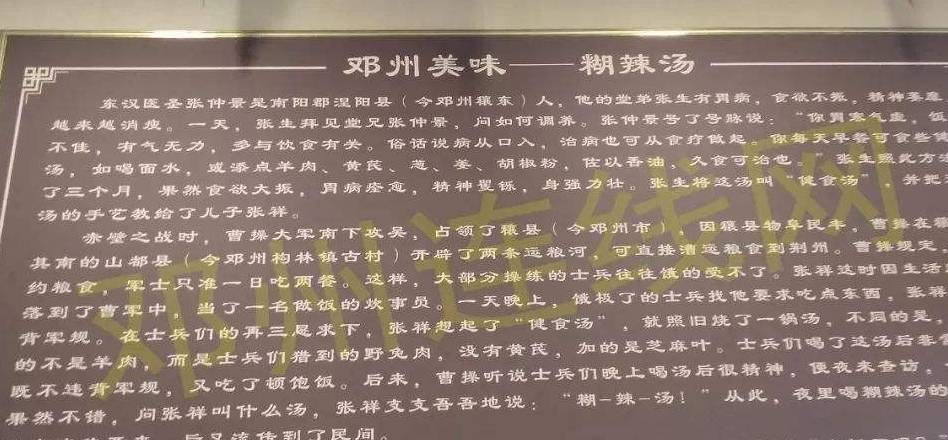 说起胡辣汤的来历,先说胡椒,这种原料是唐朝开始才流入中国的,胡辣汤的老祖宗是酸辣汤和肉粥,当时根据社会潮流和口味,胡辣汤根据这两种汤进行了改良,也加入了很多药材,具有食疗作用,颇受当时社会的欢迎。
