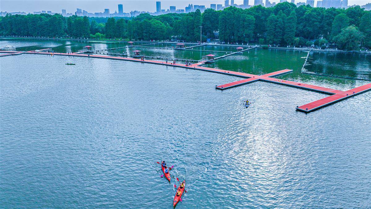 “在运动项目中,我最偏爱水上运动,不用长途跋涉,在家门口水域就能开始训练。”家住东湖附近的游客孙庆来2021年接触皮划艇,经常来东湖训练游玩,他告诉记者,“皮划艇是较容易上手的水上运动,我从接受培训到独立下水仅需十多分钟,熟练操作后,不仅能体验驰骋水面的快感,锻炼身体强健体魄,还能换个角度欣赏东湖沿岸美景。”