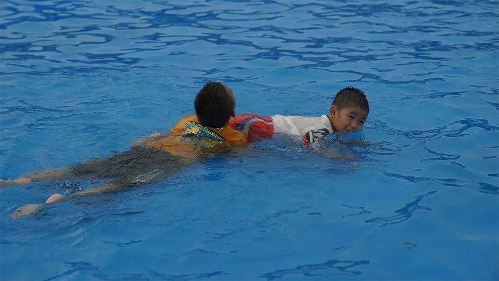在家长的陪同下,小朋友在水上乐园欢乐地玩耍