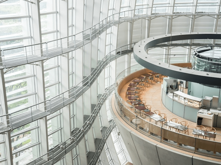 外观像巨大海浪一样的建筑便是国立新美术馆。该建筑是由曾设计过博物馆、美术馆、马来西亚吉隆坡国际机场等的世界著名建筑师黑川纪章亲自操刀。