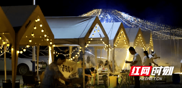 祁阳香湖湾是一处临江而建的乡村旅游点。如今这里已建成古村落临江民宿、国家级自驾车房车露营基地、游艇水上运动的综合型生态旅游乡村度假区。夜幕降临,江风徐来,一场祁剧户外表演加露天“烧烤趴”正在进行,吃烧烤、品祁剧,缓解一天的疲惫,享受这份属于自己的清凉夏夜。