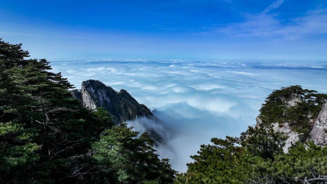 忽闻海上有仙山,山在虚无缥缈间。春日的天堂寨频繁被云海占据着,如梦如幻,美不胜收。置身于云海峰巅,不禁油然而生一种“会当凌绝顶,一览众山小”的豪情。云海已至,邀你一同如画,共享人间仙境。