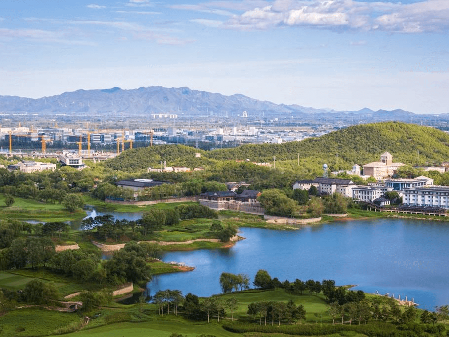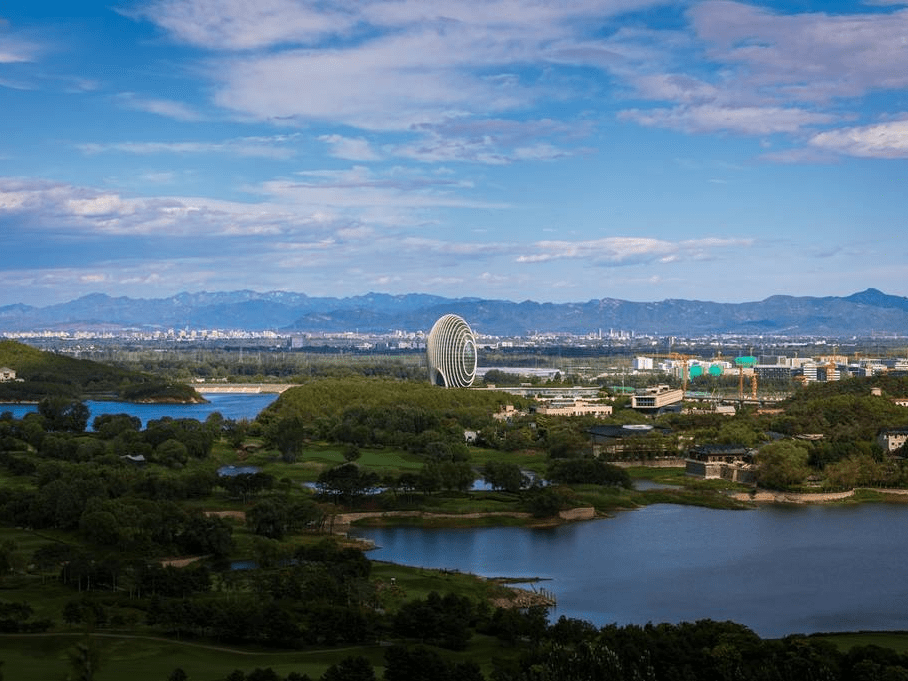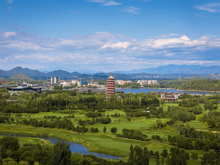 雁栖湖因截雁栖河水而成,水量丰富,水质清澈,常有大雁、天鹅等珍禽候鸟在此栖息,故称雁栖湖。
